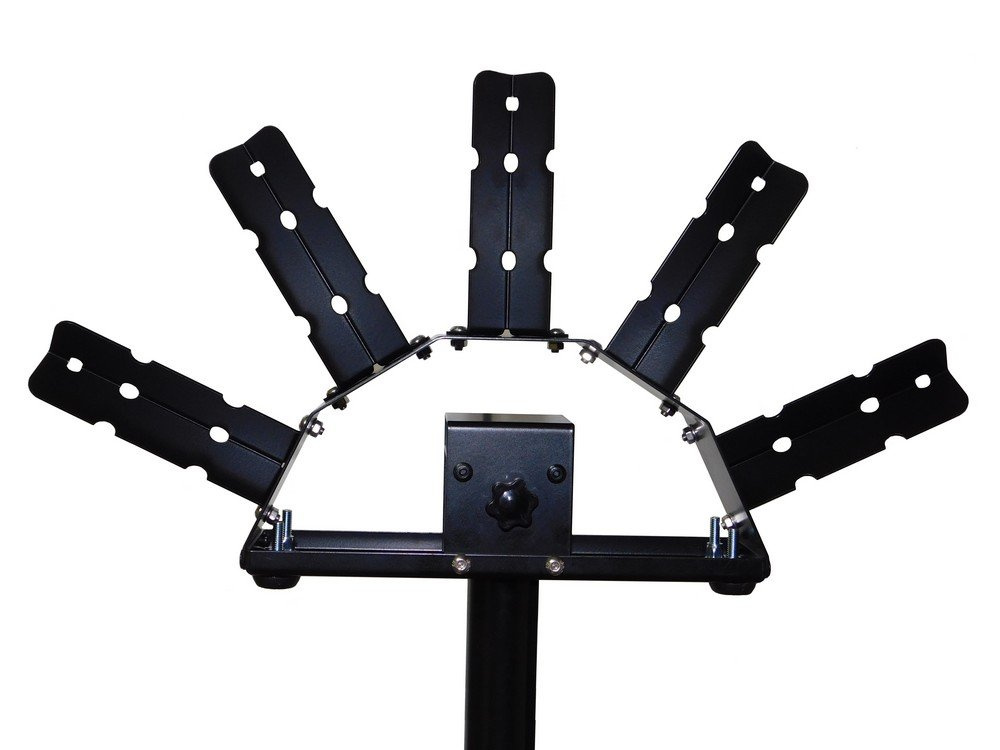 Vějířový nosič interiérových fontán až pro 5 ks, montáž na stativ. Doporučený maximální vnější průměr tubusu 50mm. Uchycení efektů pomocí stahovacích pásek (není součástí).